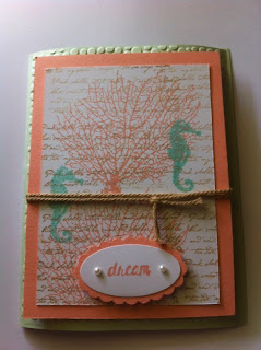 The third card is a sparkly card for my cousin that used the star framelit dies on pg. 231. and the last card is my favorite new color combo of crisp cantaloupe, pistachio pudding, and coastal cabana. The stamp set I used is called By The Tide and can be found on pg. 131. I think this is my new favorite set and I see lots that can be done with this one!